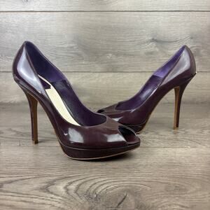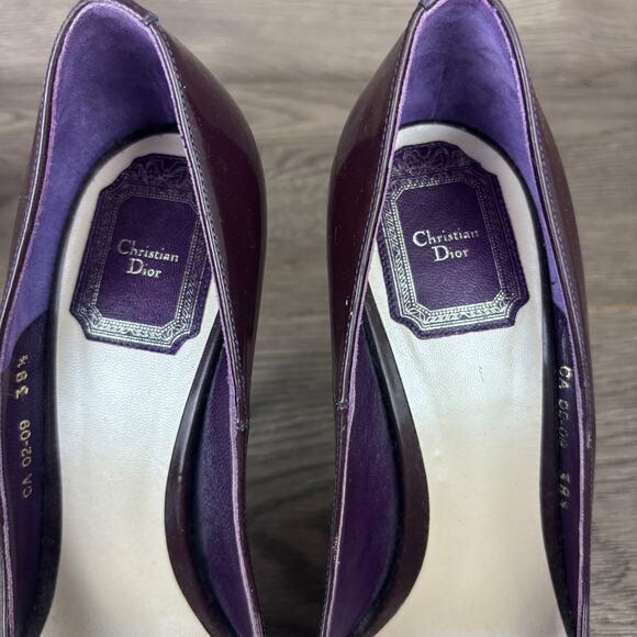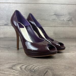 CHRISTIAN DIOR Purple Patent Leather Peep Toes Pumps Heels Women's 8 / 38.5