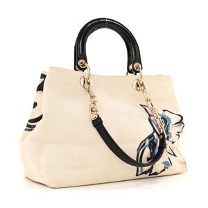 Elevate your style with this chic CHRISTIAN DIOR RARE CANVAS BAG. Featuring a striking black and blue floral design, this bag is perfect for any occasion. Its elegant handles and spacious interior make it both fashionable and functional.