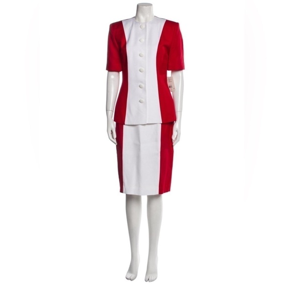 CHRISTIAN DIOR RARE! Vintage Old Money Red White Skirt Jacket Power Suit Set NWT