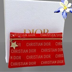 CHRISTIAN DIOR RED PATENT LEATHER CLUTCH WITH RHINESTONES SILVER STAR CHARM
