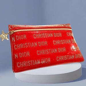 Christian Dior red patent leather clutch.