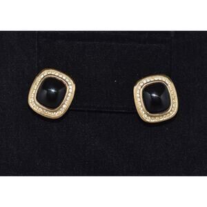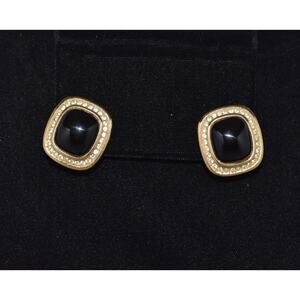 Vintage CHRISTIAN DIOR Rhinestone & Black Cabochon Clip-On Earrings