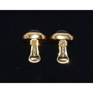 CHRISTIAN DIOR Rhinestone & Black Cabochon Clip-On Earrings 1980s