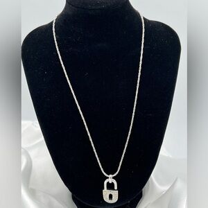 CHRISTIAN DIOR Rhinestone Lock Silver Necklace
