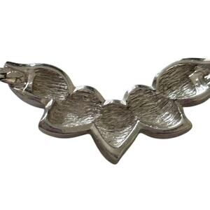 The Christian Dior Beautiful Silver-Tone Pavé Leaf Cluster Necklace is a stunning piece of vintage jewelry signed by the iconic designer. The necklace features a delicate leaf pendant adorned with crystal accents, exuding elegance and beauty. This fashion-forward accessory is perfect for adding a touch of glamour to any outfit, making it a timeless and sophisticated addition to any jewelry collection.