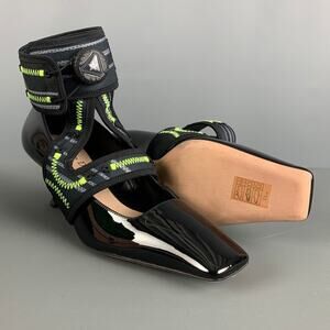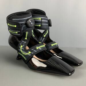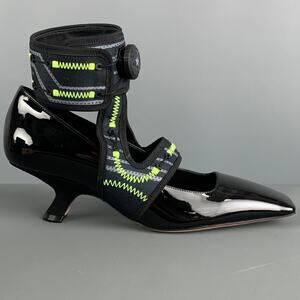 CHRISTIAN DIOR Size 7 Black Yellow Patent Leather Square Toe Pumps