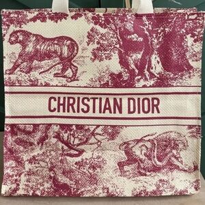 CHRISTIAN DIOR Straw Dioriviera Tote in Red