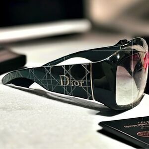 CHRISTIAN DIOR Sunglasses Cannage Black Quilted Luxury Designer Silver Logo Serial # on Lense Made In Italy