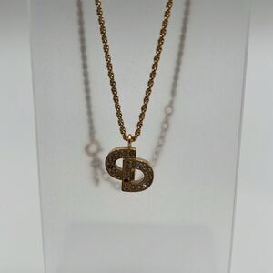 CHRISTIAN DIOR VINTAGE "CD" CRYSTAL CHARM GOLD NECKLACE