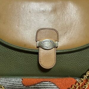 CHRISTIAN DIOR Elegant bag in brown and green leather with a chic gold chain. Perfect for any occasion. Please look at pictures as part of description and ask questions.