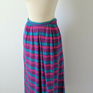 CHRISTIAN DIOR VINTAGE Midi Skirt Striped Pink Blue High Waist Womens Size Small