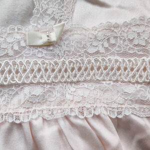 CHRISTIAN DIOR Vintage Pink Satin Square Neck Lace Trim Cotton Lined Nightgown