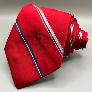 CHRISTIAN DIOR Vintage Red Blue/Gray/White Striped Monogram Mens Necktie 56”x3”
