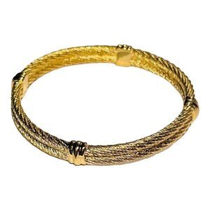 CHRISTIAN DIOR Vintage Twisted Double Cable Rope 18k Gold Plated Designer Luxury Signed Bangle Bracelet