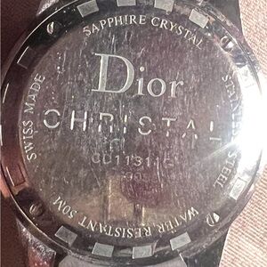 Elegant Dior Christal Collection watch. Christal band with stainless steel. Featuring Quartz Movement with Date Complication. Diamond, Unidirectional Rotating &Gemstone Sapphire’ Bezel. Mother of pearl Dial. Butterfly Clasp. Stylish and sophisticated. Watch Height : 10mm. Diamond carat weight 0.58 . Stone count: 97. Stone Shape: Round Brilliant , Color Grade: Near Colorless. Clarity Grade: Very Slightly Included.