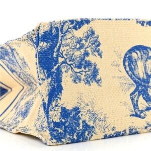 This is an authentic CHRISTIAN DIOR Straw Dioriviera Tote in Blue. This stylish bag is crafted of straw with a printed blue design. The bag features beige shoulder straps and the top opens to a spacious interior.