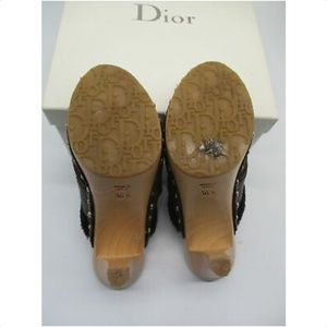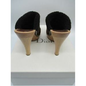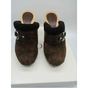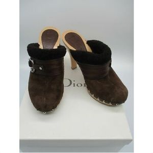 CHRISTIAN DIOR brown suede and shearling trim clogs sz 6.5
