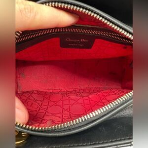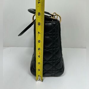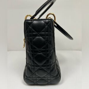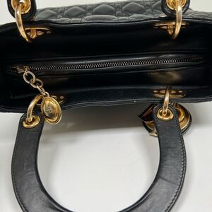 CHRISTIAN DIOR Lady Cannage Hand Tote Bag Leather Black Gold