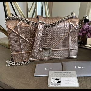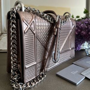 CHRISTIAN DIOR Metallic Patent Micro-Cannage Medium Diorama Flap Bag Pink