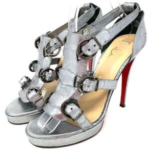 CHRISTIAN LOUBOUTIN 120 mm LIMA SILVER PLATFORM BUCKLE SANDALS HEELS SHOES SZ 39 in very nice pre-loved condition. Moderate signs of wear throughout moderate marks and scuffs throughout. Please check the size you would need on Google or the Louboutin website. Louboutin’s often run one size to one half size smaller than specified. no box no bag. Authenticity guaranteed or your money back. Current MSRP on similar styles $ 1495.00