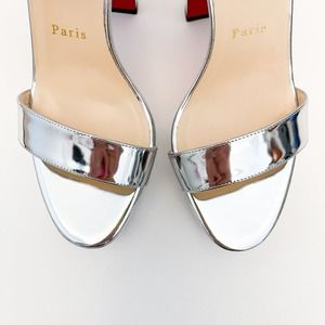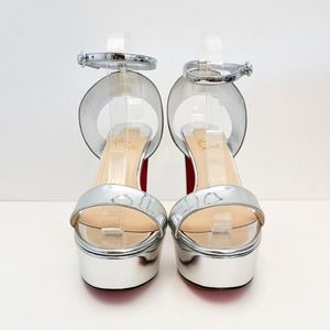 CHRISTIAN LOUBOUTIN Arkendisc Alta 130 metallic silver rainbow platform sandals