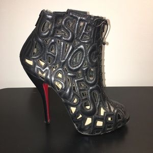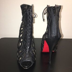 CHRISTIAN LOUBOUTIN BLACK LASER CUT LEATHER BOOTIE