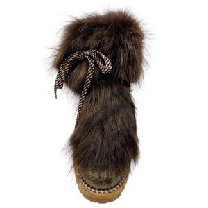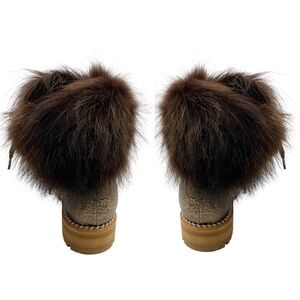 Christian Louboutin Bronze Metallic / Brown Fanny Flat Roche Fur Specchio Leather Lace Up Combat Boot