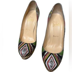 CHRISTIAN LOUBOUTIN Bianca Python Platform Pumps Multicolor Sz 37 orig box incl