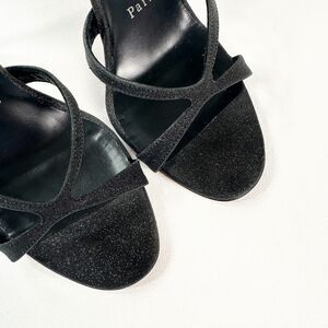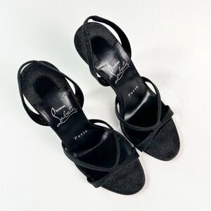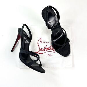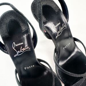 CHRISTIAN LOUBOUTIN Black Glitter Emilie Heel Size 37 Slingback Strass Strappy