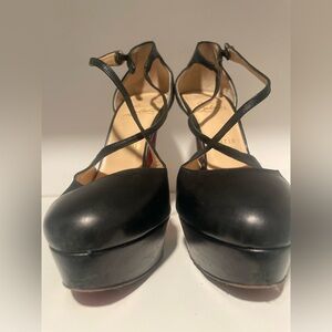 CHRISTIAN LOUBOUTIN Black Leather Criss Cross Platform Pumps Size 38.5