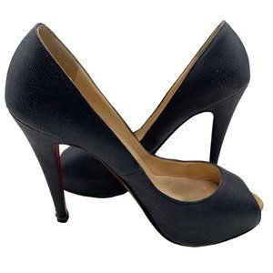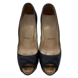 CHRISTIAN LOUBOUTIN Charcoal Coated Canvas Peep Toe Pumps Sz 35.5 US 5.5