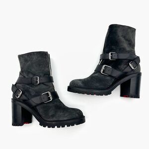 CHRISTIAN LOUBOUTIN Bouclette Viyonce Suede Ankle Boot Size 40.5 Shearling Lined