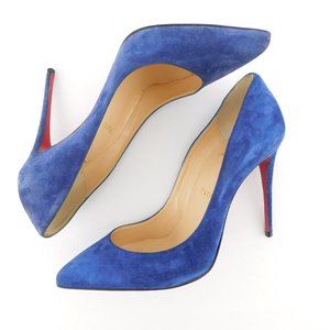 CHRISTIAN LOUBOUTIN Brilliant Blue Suede Leather Stiletto Heel Pumps 37
