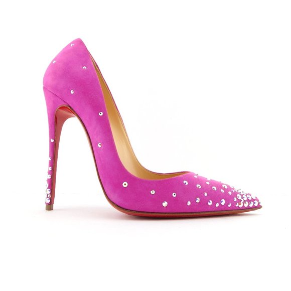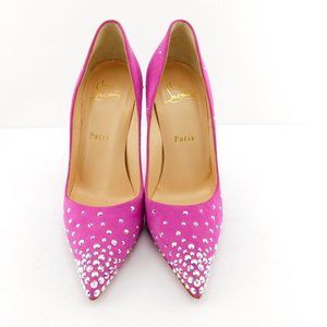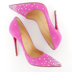 CHRISTIAN LOUBOUTIN Crystal Embellished Pink Suede Leather Stiletto Heels 37