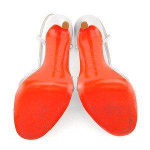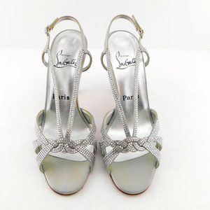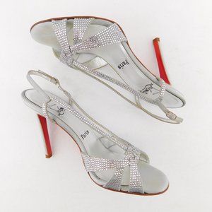 CHRISTIAN LOUBOUTIN Crystal Encrusted Silver Satin Strass Evening Heels 37.5