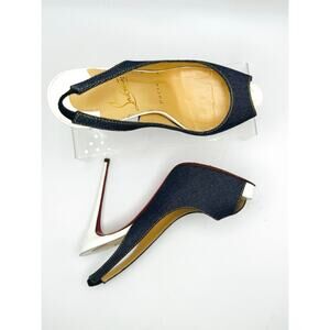 CHRISTIAN LOUBOUTIN Denim/Jazz Leather Peep toe Slingback Sandals size EU 35.5
