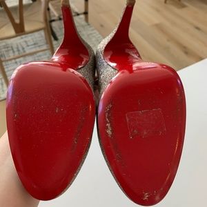 CHRISTIAN LOUBOUTIN Fifi 85 Silver Fine Glitter Round Toe Pump, EU38 - Like New!