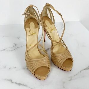 ❤️Lovely CHRISTIAN LOUBOUTIN Filamenta 120 leather mesh peep toe platform sandals