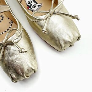 CHRISTIAN LOUBOUTIN Girls’ Baballet Gold Ballet Flats Size 33 US 3 Metallic Iridescent Nappa Leather Mary Jane Square Toe Ballerina Loafer