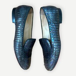 CHRISTIAN LOUBOUTIN Iridescent Python Loafers 36 6 Blue Flats Metallic
