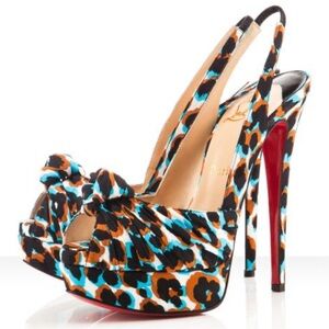 Elegant leopard print heels with signature red sole. Features a striking design.