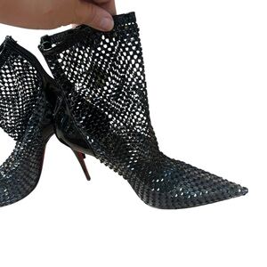 Christian Louboutin's 'Kate Max' boots will add a touch of glamour to your look. They're made from black mesh and patent-leather and embellished with scores of sparkling crystals. They have sharp pointed toes and pin-thin stiletto heels that offer a peek at the red lacquered soles.
