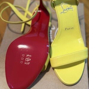 CHRISTIAN LOUBOUTIN Loubigirl 85 Patent Leather Heel Sandals Yellow Size 40