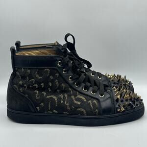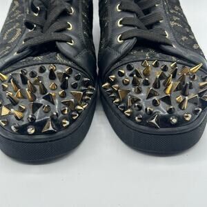 CHRISTIAN LOUBOUTIN Louis High Pik Jacquard Sneaker Black Gold Spike Sz 44/11