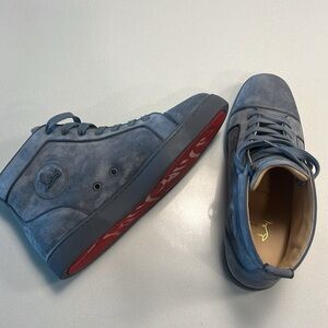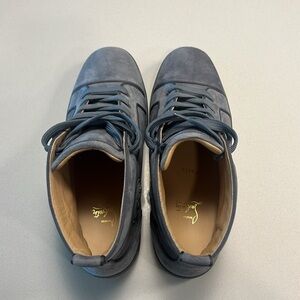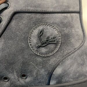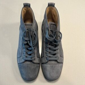 CHRISTIAN LOUBOUTIN Louis Logo Grosgrain-Trimmed Suede High-Top Sneakers Gray