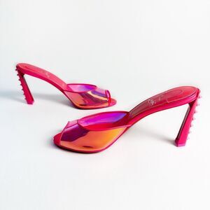 CHRISTIAN LOUBOUTIN Me Condorapik Condora Pink Slide Heels Size 39 US 8.5 Spike Peep Toe Spike Iridescent Mule