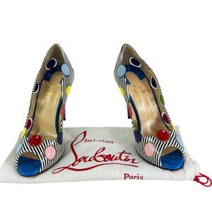 CHRISTIAN LOUBOUTIN Multicolor Lady Bug Polka Dot Heels Made in Italy 37 - 7US