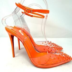 CHRISTIAN LOUBOUTIN ORANGE SPIKOO NEON FLUO PERLE PVC HEELS SIZE 38.5 RED SOLE
