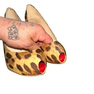 CHRISTIAN LOUBOUTIN Patent Leather Cheetah Print Peep Toe Platform Heels sz39.5