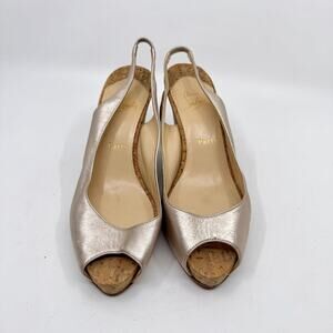 CHRISTIAN LOUBOUTIN Red Bottoms Rose Gold Slingback Cork Wedges w/ Vibram Sole